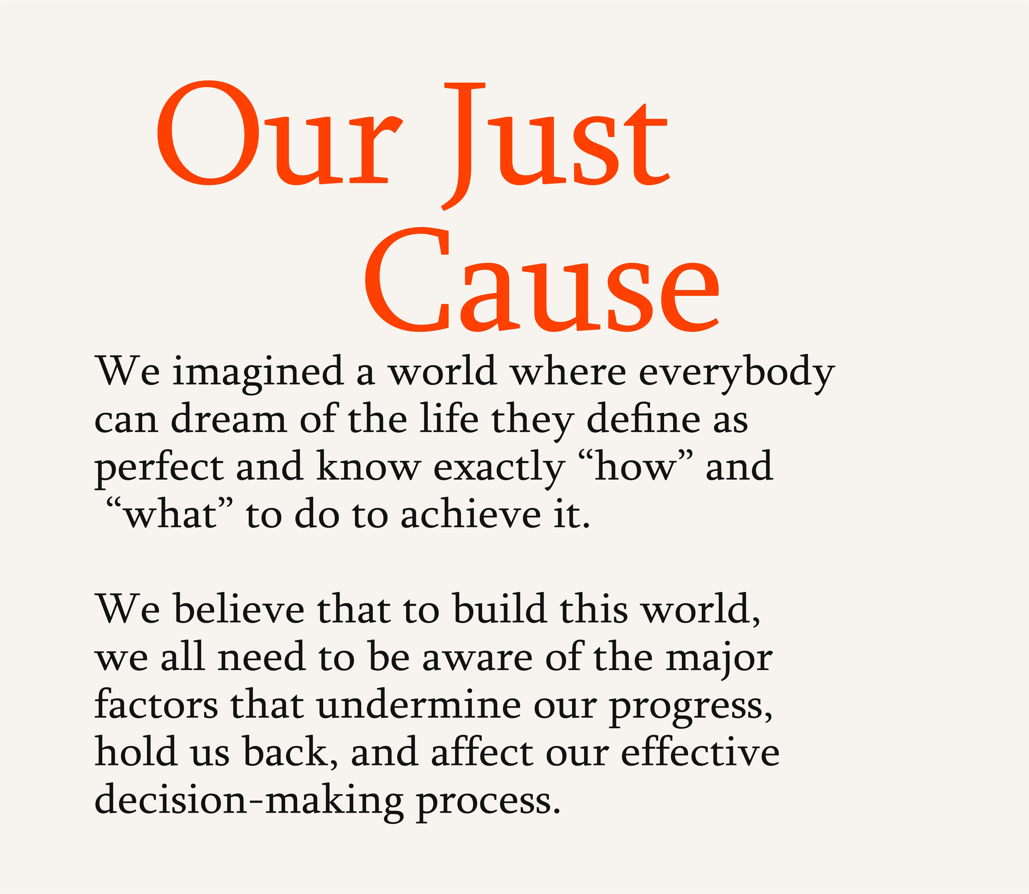 We imagined a world where everybody can dream of the life they define as perfect and know exactly “how” and “what” to do to achieve it.We believe that to build this world, we all need to be aware of the major factors that undermine our progress, hold us back, and affect our effective decision-making process.